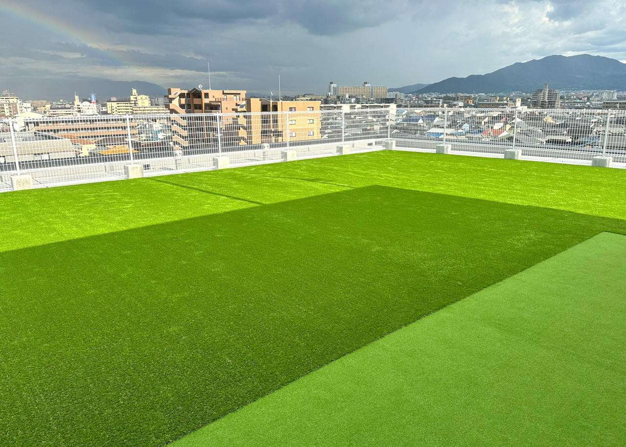 長く使用されていなかった屋上を憩いの場として活用したいとの事で人工芝施工をご依頼いただきました。広いスペースを有意義に使用したいとのご要望もあり、パターグリーンの設置もご希望でした。