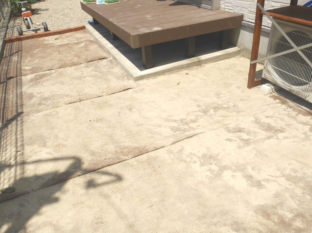 3年前の新築時から現在まで、お庭には防草シートと砂利を敷いておられました。お子様の成長に合わせて、裸足でも遊べる人工芝を検討されたそうです。防草シートは既存の物をそのまま残して欲しいとのことで、今回は人工芝のみ施工いたしました。