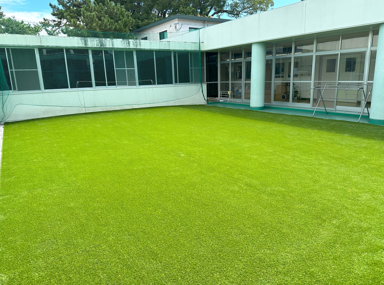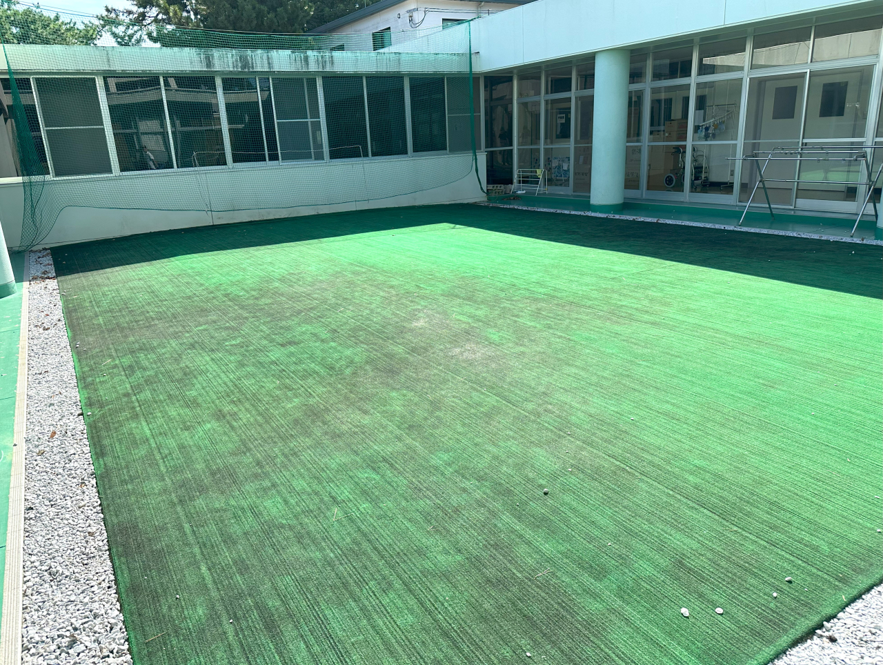 既存の人工芝の劣化に伴い、新たに人工芝を施工したいとのご依頼を頂きました。リハビリ用のお散歩コースにもご使用されるということでしたので、弊社の人工芝の中でも密度が適度にあり費用とのバランスが取れたAタイプ芝丈30mmをお勧めさせていただきました。