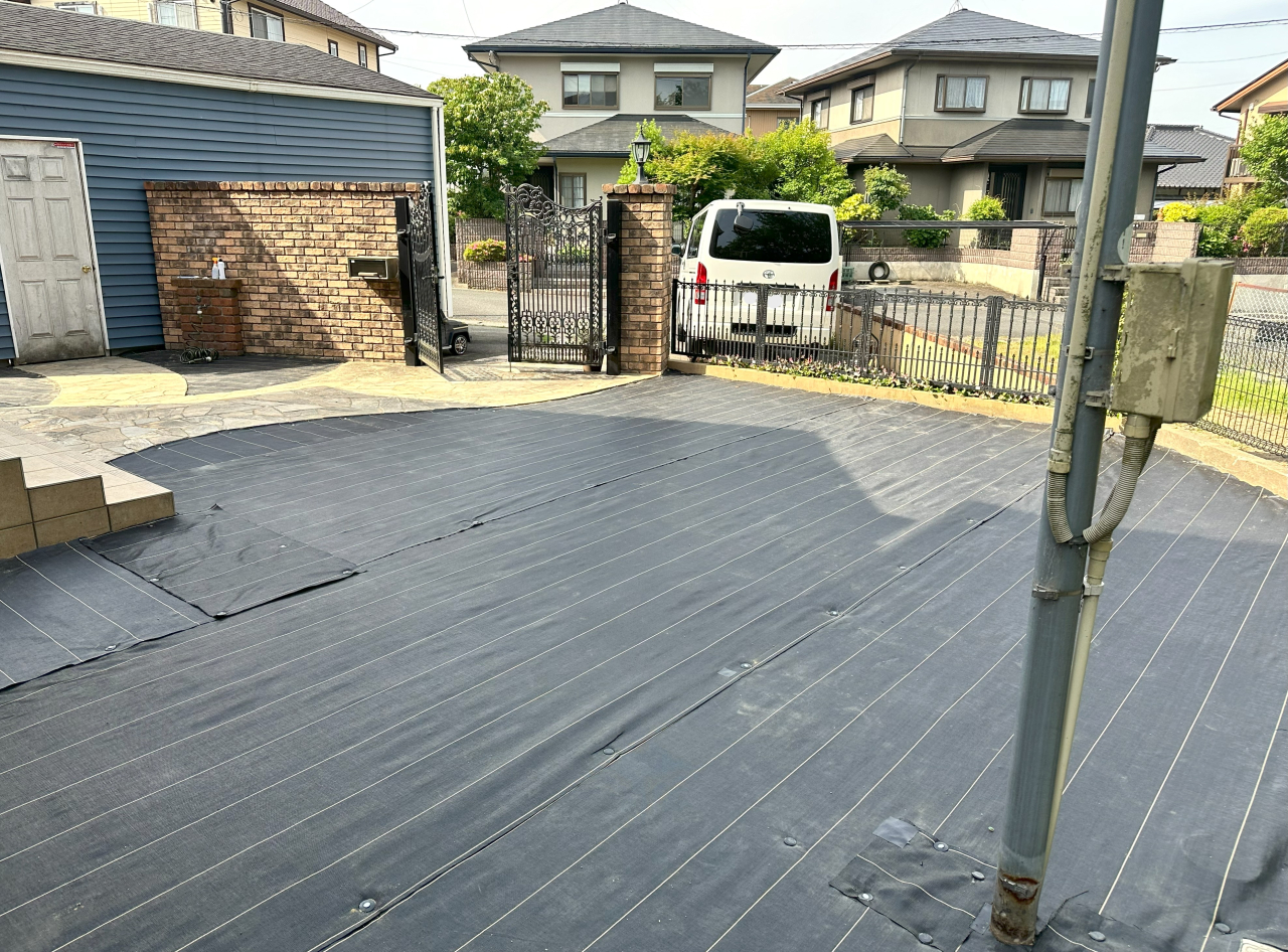 お庭全体の清掃後、既存の防草シートの上に人工芝を施工させていただきました。お庭一面緑に包まれ、お庭だけではなくお家全体の雰囲気も明るくなりました。仕上がりにも大変お喜びいただけました。この度は誠にありがとうございました。
